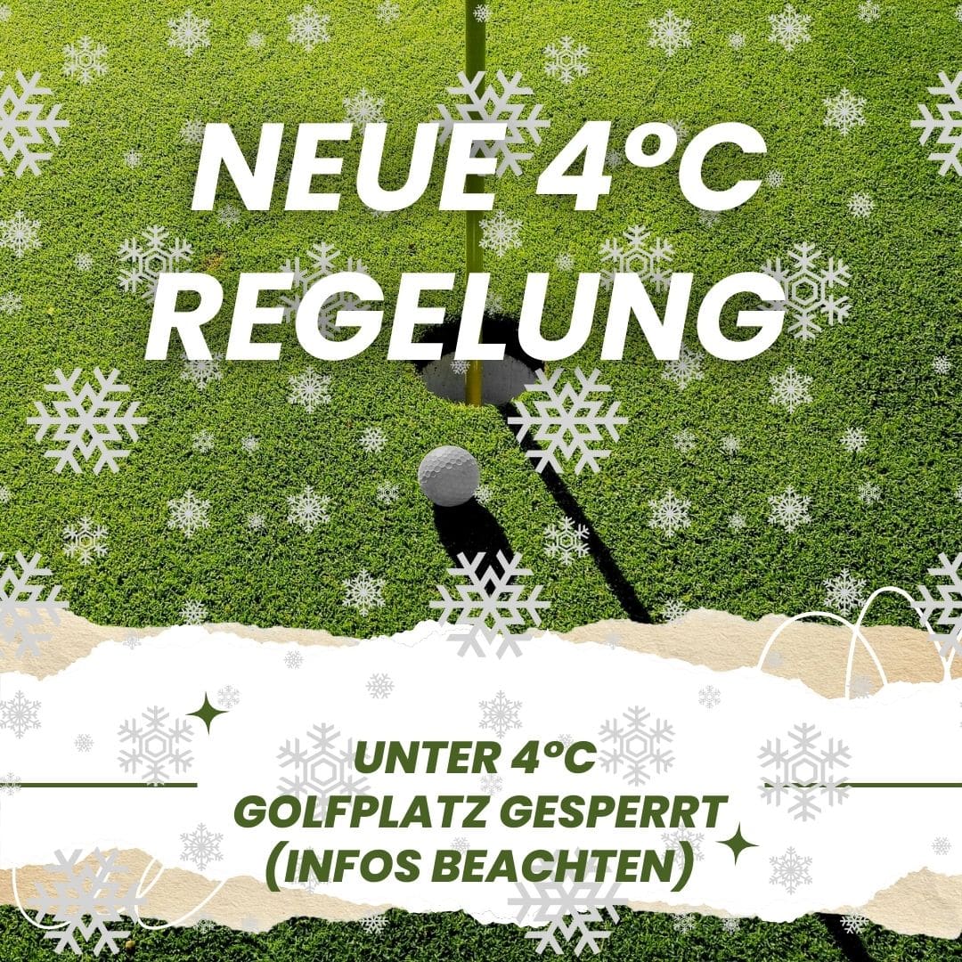 Bei Temperaturen unterhalb von +4 °C bleibt der Golfplatz sowie die gesamte Übungsanlage (inkl. Putting- und Chipping-Grün) aufgrund von Bodenfrost oder Schneefall geschlossen.